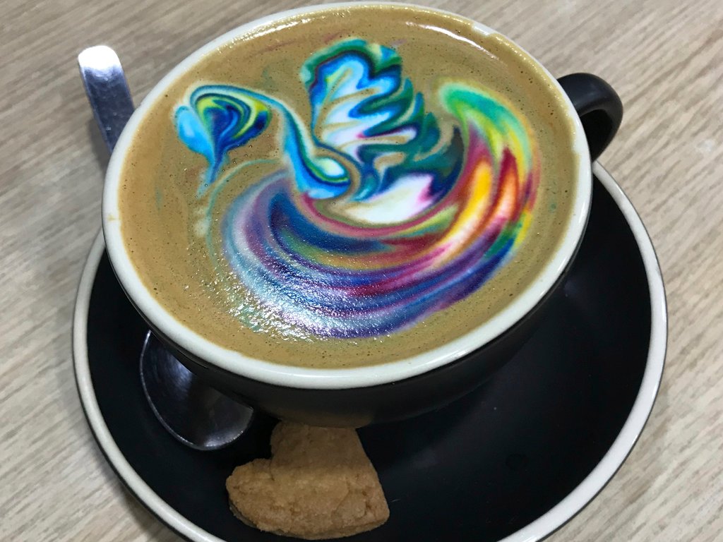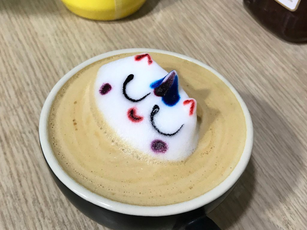 La variedad de cafés van rotando semanalmente. Esta técnica de art latte consta de hacer figuras kawaii con la espuma, como por ejemplo gatitos, unicornios, perritos.
