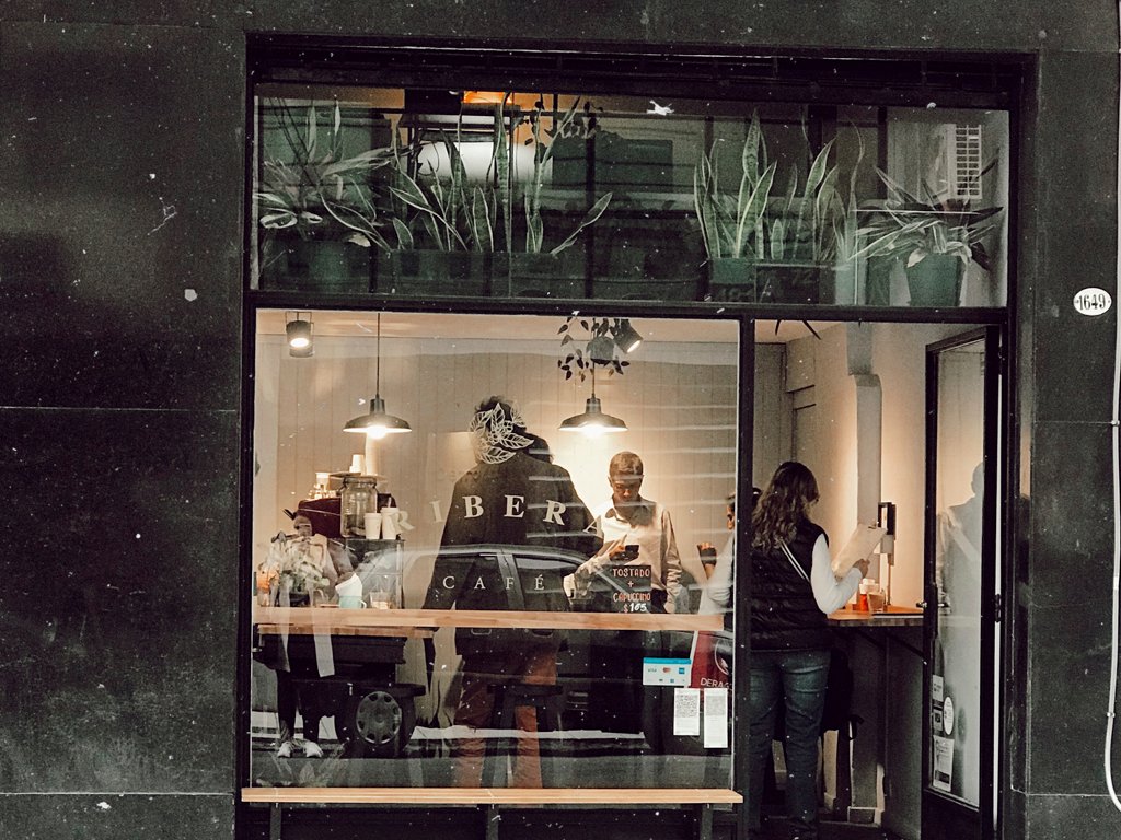 Desde la fachada se puede ver una cafetería pequeña, cálida y muy acogedora.