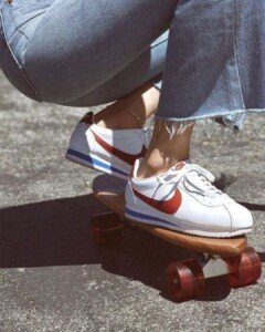 Farrah Fawcett: La icónica actriz de Los Ángeles de Charlie fue fotografiada en 1977 usando unas Nike Cortez mientras patinaba, convirtiéndose en una de las imágenes más representativas del estilo casual de la época.