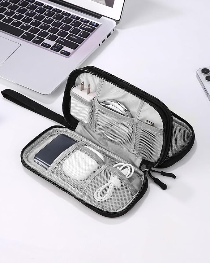 - Diseño de doble capa: El organizador de cables mide 21x 12.5x 6.5 cm, pequeño en tamaño y grande en capacidad. Diseño de gran apertura, fácil de guardar y extraer el adaptador de corriente, categorizado y perfectamente organizado para mantener sus dispositivos en su sitio. Fácil de transportar, perfecto para viajar.